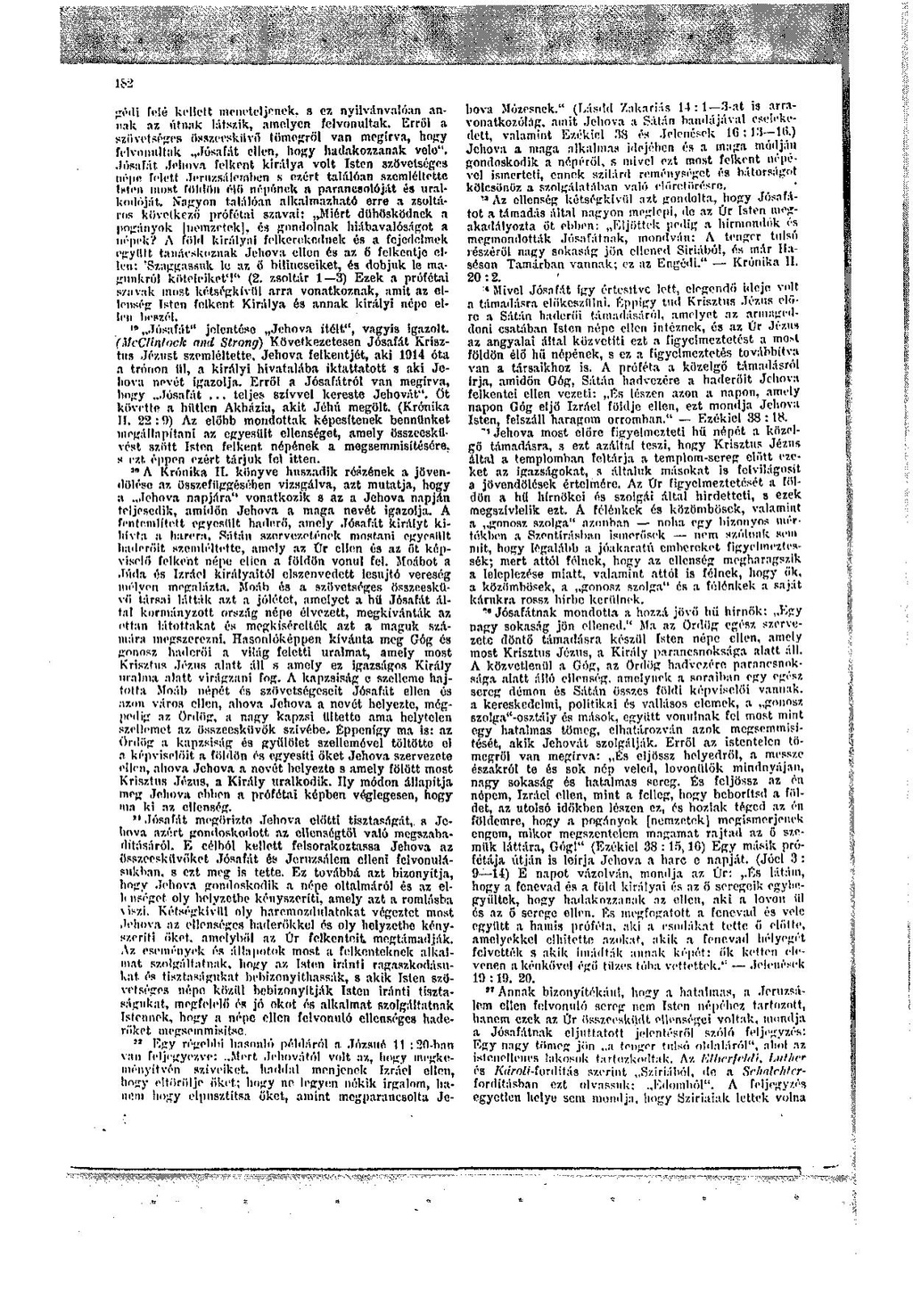 (McClintock and Strong) Következetesen Jósafát Krisztus Jézust szemléltette, Jehova felkentjét, aki 1914 óta a trónon ül, a királyi hivatalába iktattatott s aki Jehova nevét igazolja. Erről a Jósafátról van megírva, hogy „...Jósafát ... teljes szívvel kereste Jehovát". őt követte a hűtlen Akházia, akit Jéhú megölt. (Krónika II. 22:9) Az előbb mondottak képesítenek bennünket megállapítani az egyesült ellenséget, amely összeesküvést szőtt Isten felkent népének a megsemmisítésére, s ezt éppen ezért tárjuk fel itten.