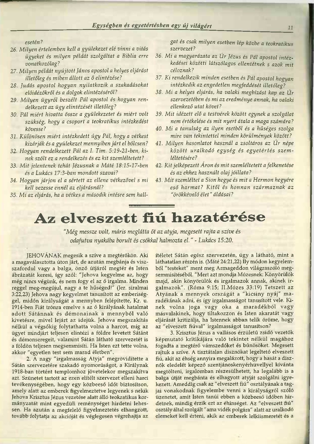 ítéletet Sátán egész szervezetén, úgy a látható, mint a láthatatlan részén is. (Máté 24:21, 22) Ily módon kegyelemből "testeket" ment meg Armageddon világraszóló megsemmisítéséből. "Mert azt mondja Mózesnek: Könyörülök majd, akin könyörülök és irgalmazok annak, akinek irgalmazok". (Róma 9:15; II. Mózes 33:19) Tetszett az Atyának a mennyek országát a "kicsiny nyáj" maradékának adni, és így irgalmasságot tanúsított vele. Kinek volna joga vagy oka a maradékból vagy másvalakinek, hogy tiltakozzon és Isten akaratát vagy eljárását kritizálja, ha Istennek abban telik öröme, hogy az "elveszett fiúval" irgalmasságot tanúsítson?